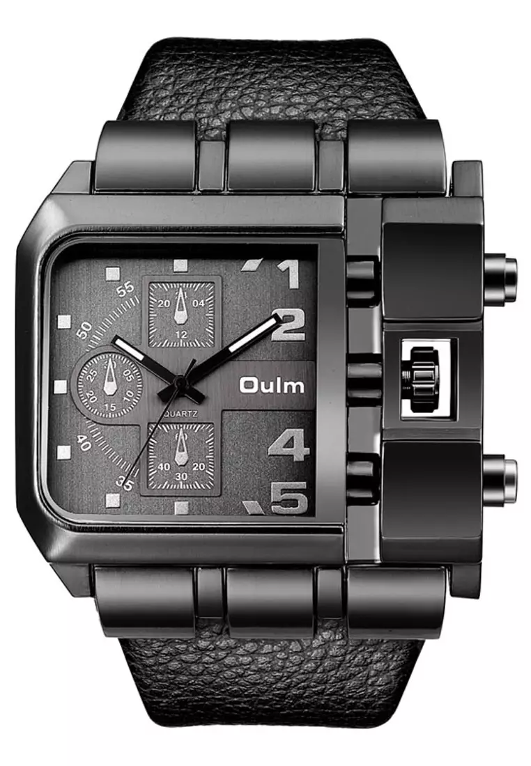 OULMVery Large Men's Quartz Watch - 53x53mm - IP Black Steel case, Black Dial, Black Leather Strap8000.002399.00