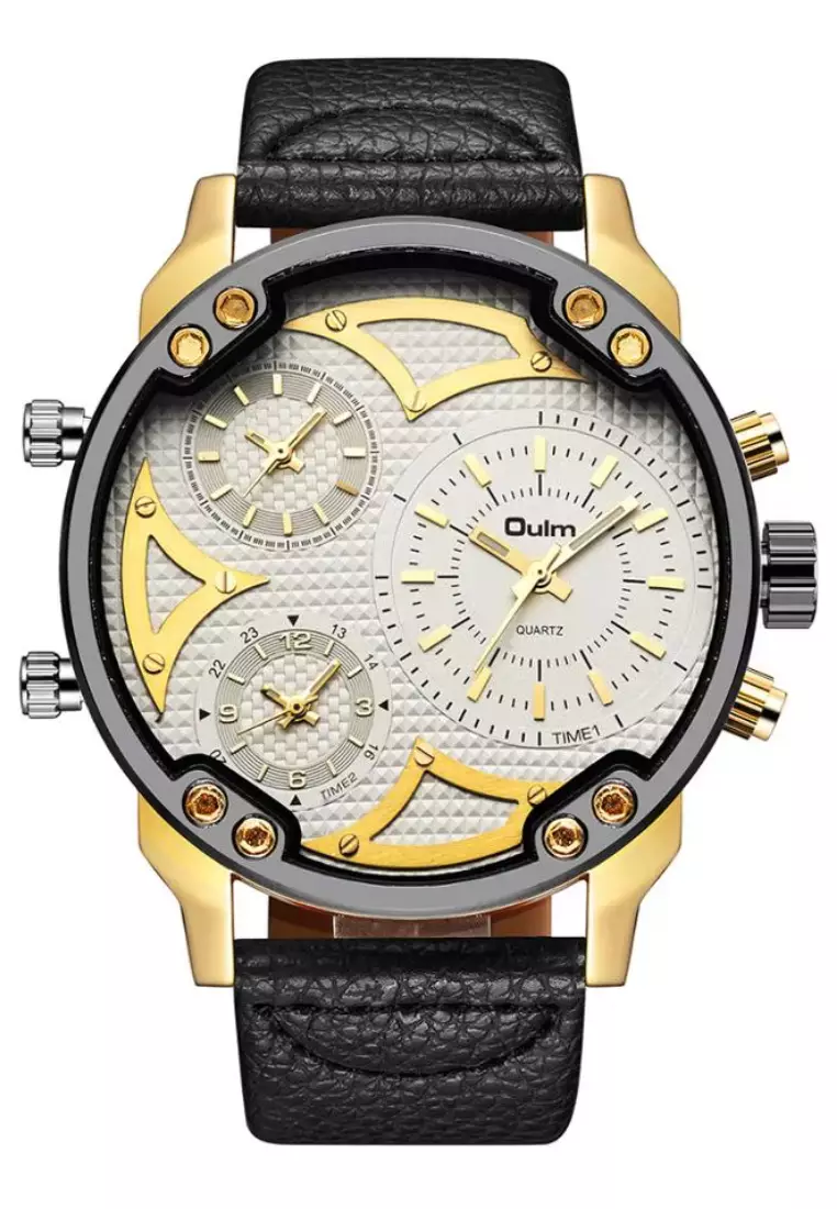 OULMVery Large Men's Quartz Watch - 58x58mm - IP Gold/Black Color Stainless Steel case, Leather Strap8000.002399.00