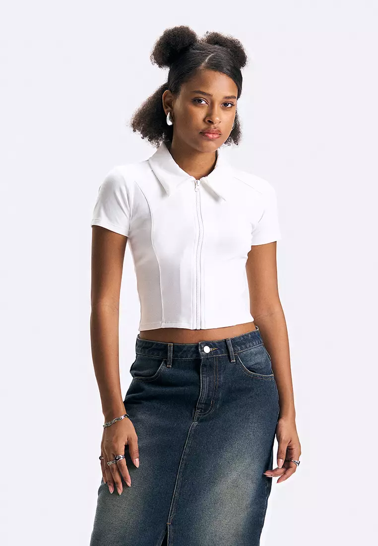 Zip-Up Cropped Polo