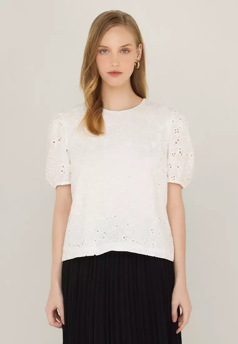 Amiethee Short Sleeve Top in Cotton Eyelet