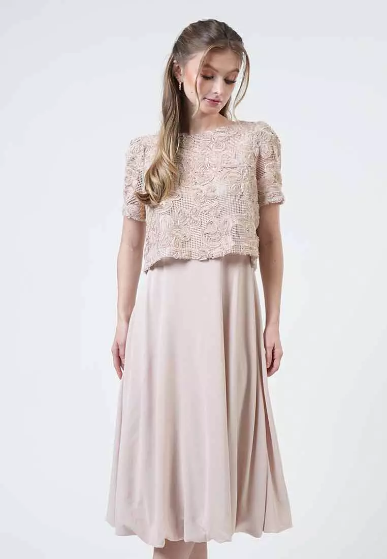 Hailey 3D Floral Appliqué Layered Midi Dress