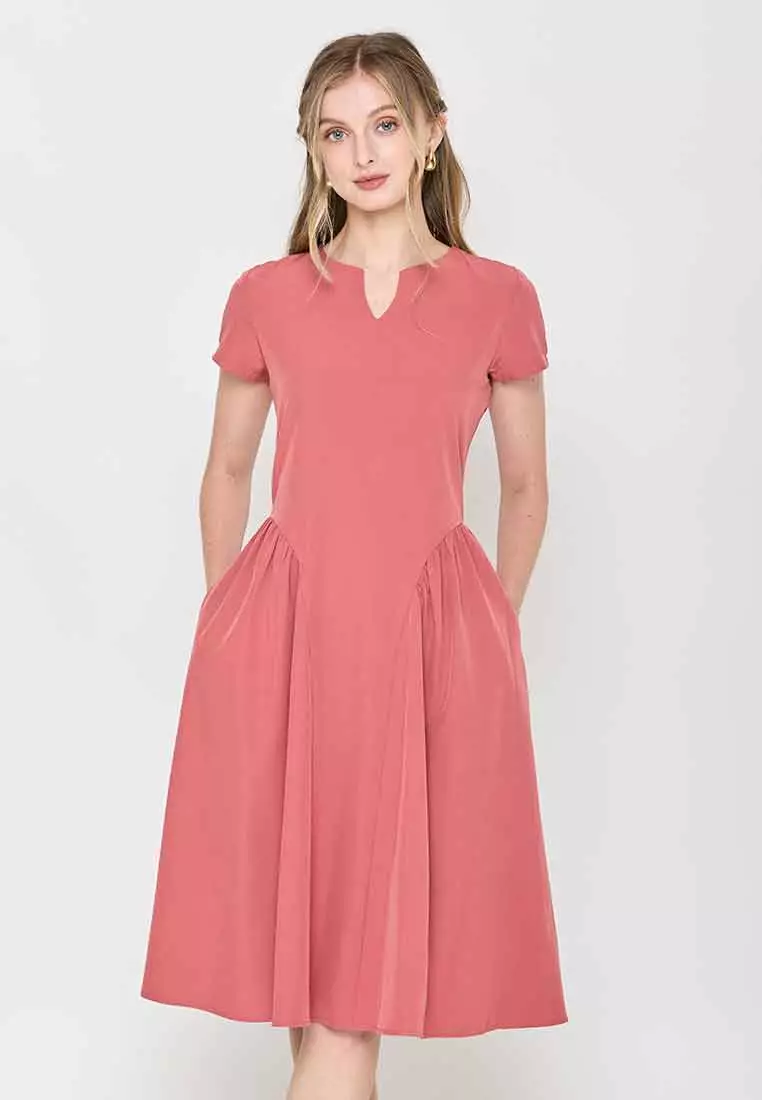 Jazmin Short Sleeves A-Line Dress with Pleats