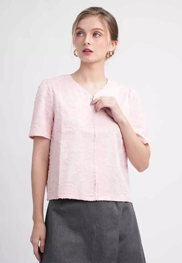 PaperdollsSola Textured Zip-Front Blouse with Puff Sleeves1899.00