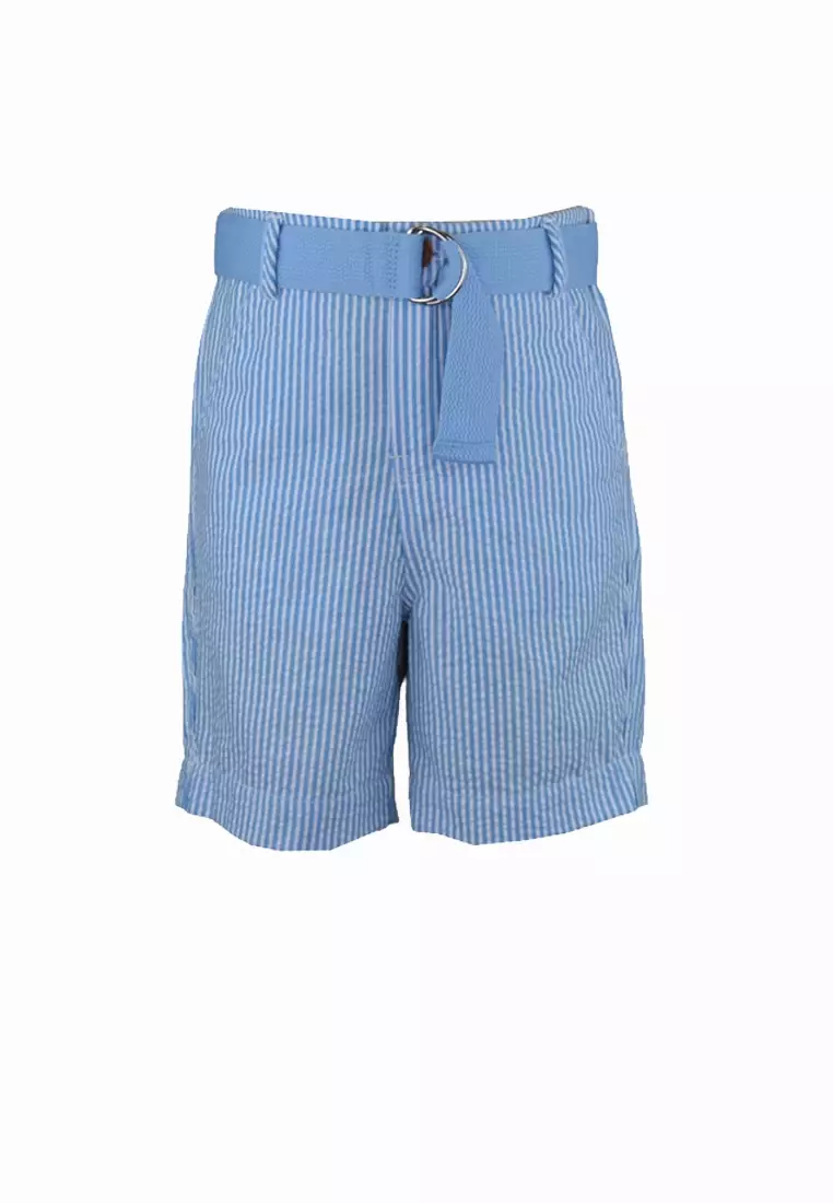 Gabriel Turquoise Seersucker Slim Fit Shorts with Belt
