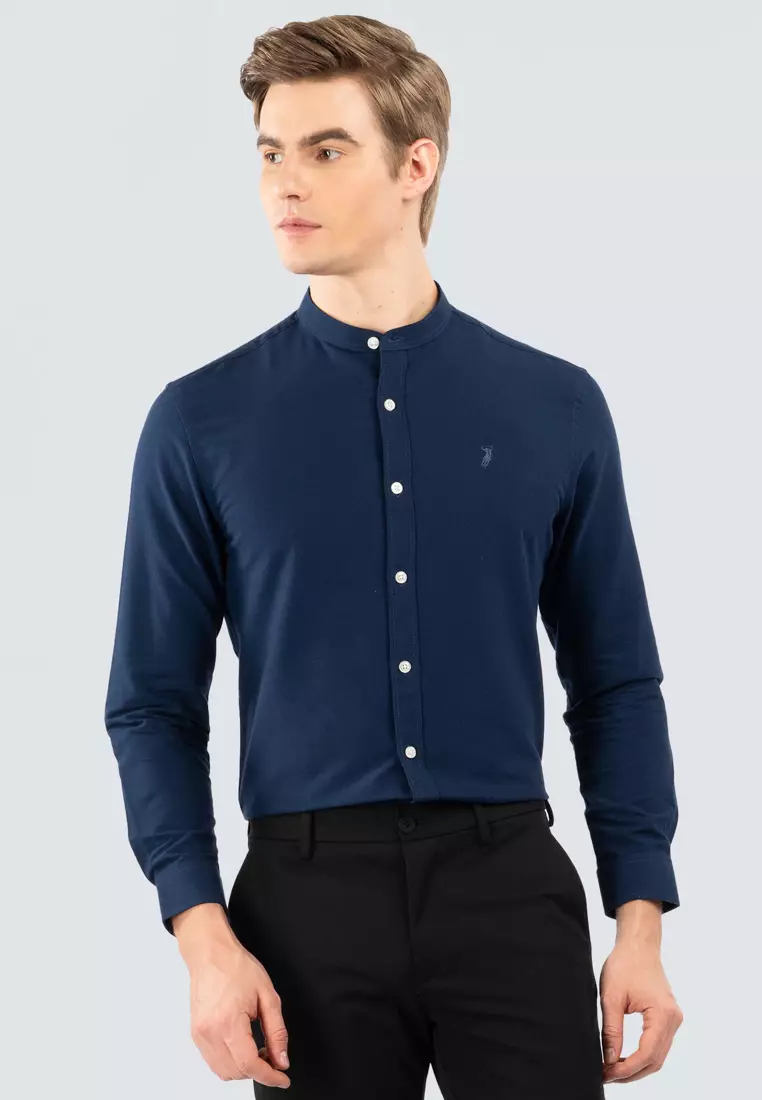 Polo Haus - Men’s Cotton Mix Signature Fit Mandarin Collar Long Sleeve MBLSE002