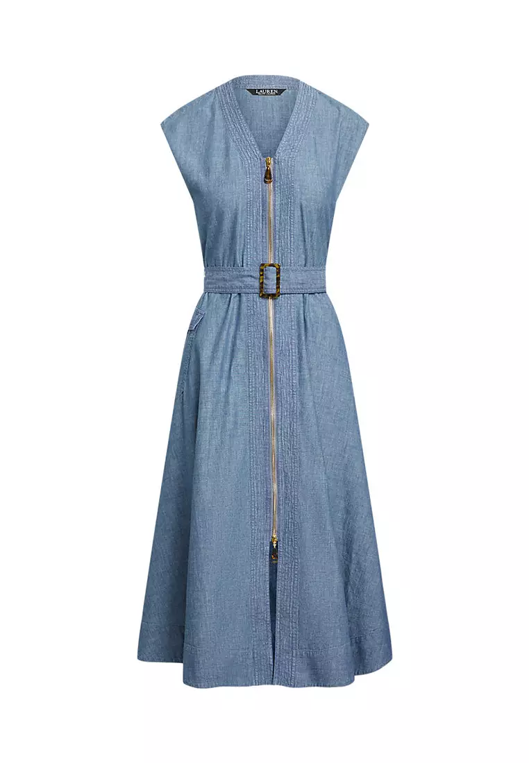 Lauren Ralph Lauren Belted Denim Cap-Sleeve Dress