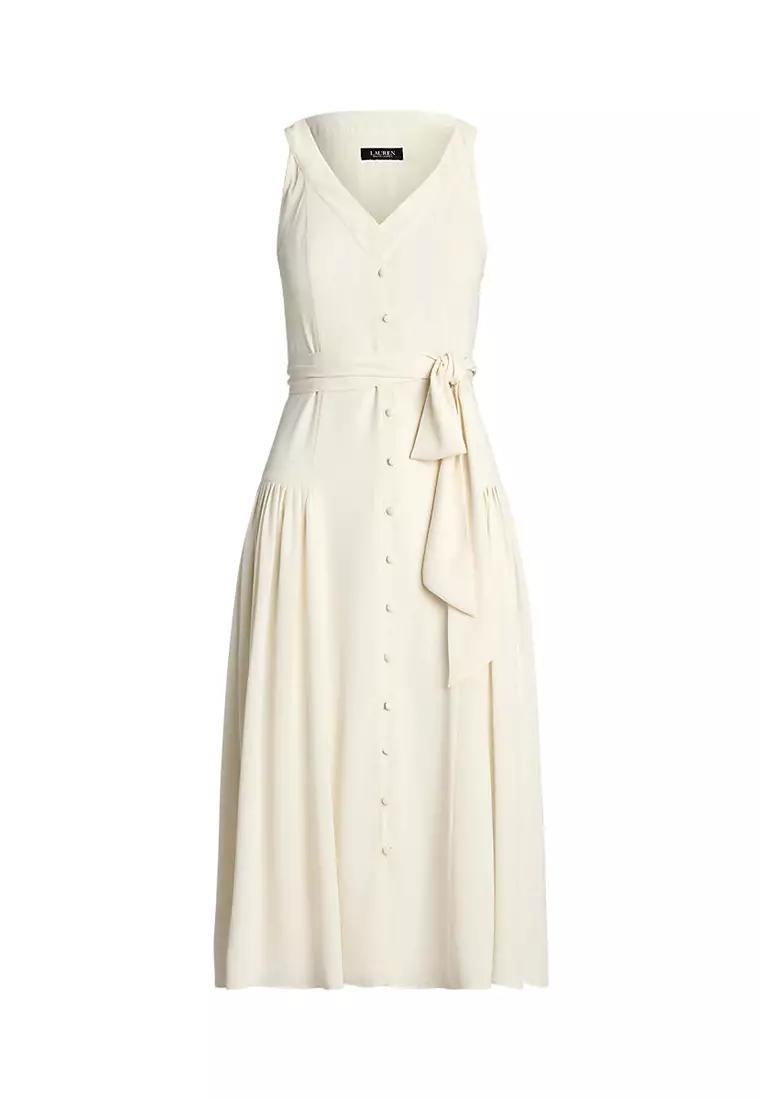 Lauren Ralph Lauren Belted Georgette Sleeveless Dress