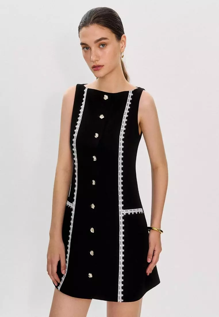 Contrast Trim Lace Dress