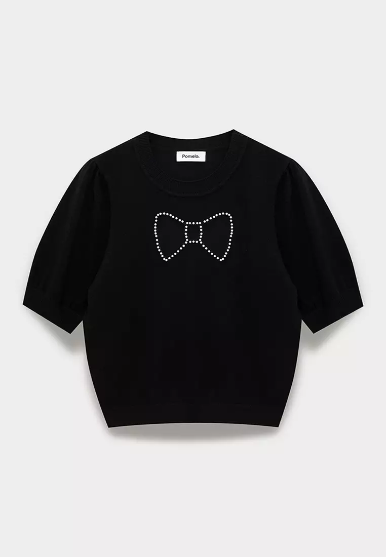 Puff Sleeve Bow Embellished Crop Top