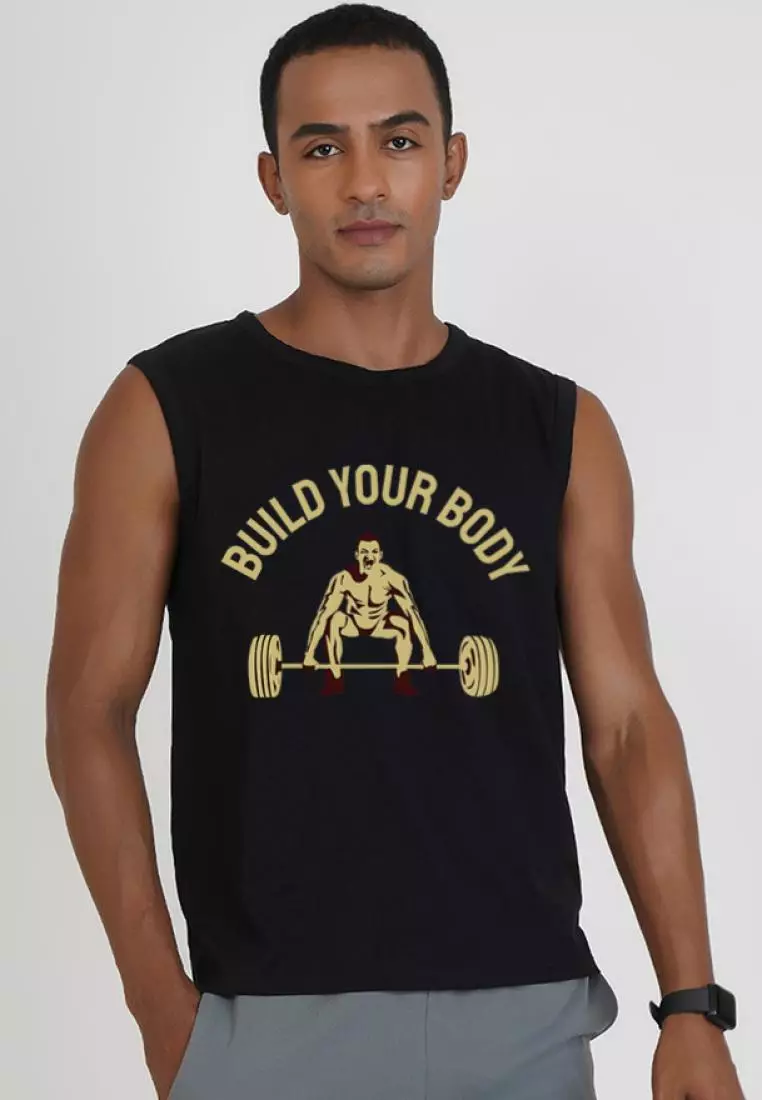 Build Your Body Black Graphic Sleeveless Gym workout Tank/Vest