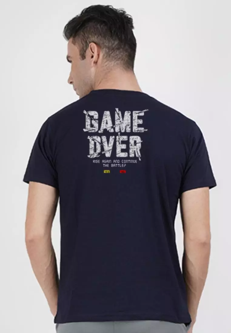 QuirkyTGameover Graphic Navy Blue Cotton Short Sleeve Crew Neck Relaxed Tee4006.001162.00