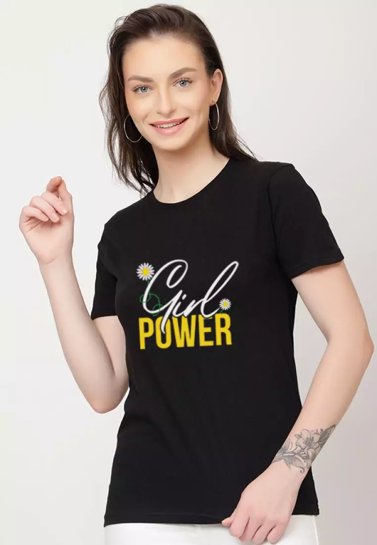 QuirkyTGirl Power Relaxed Short Sleeve Stylish Black Cotton Casual Graphic Print Tee/TShirt4008.001764.00