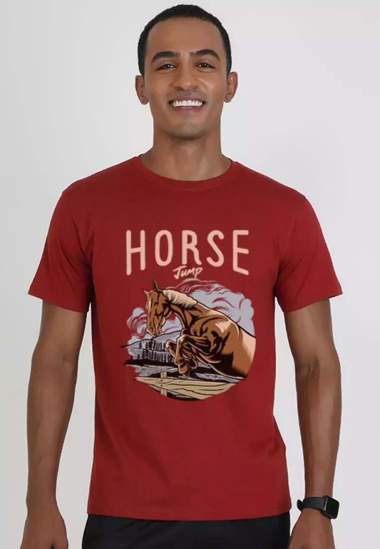 Horse Jumping Graphic Maroon Cotton Short Sleeve Relaxed Tee