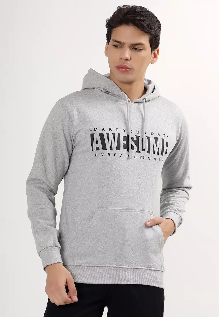 Mens Awesome Moment Rubber Print Cotton Relaxed Fit Hoodie, Grey,Training,Jogging,Premium look, Comfortable