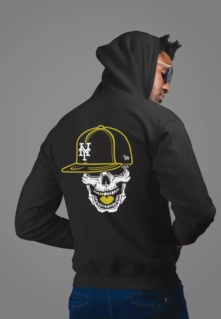 QuirkyTMens Hardcore Skull Graphic Print Black Cotton Relaxed Fit Training Hoodie7008.002733.00