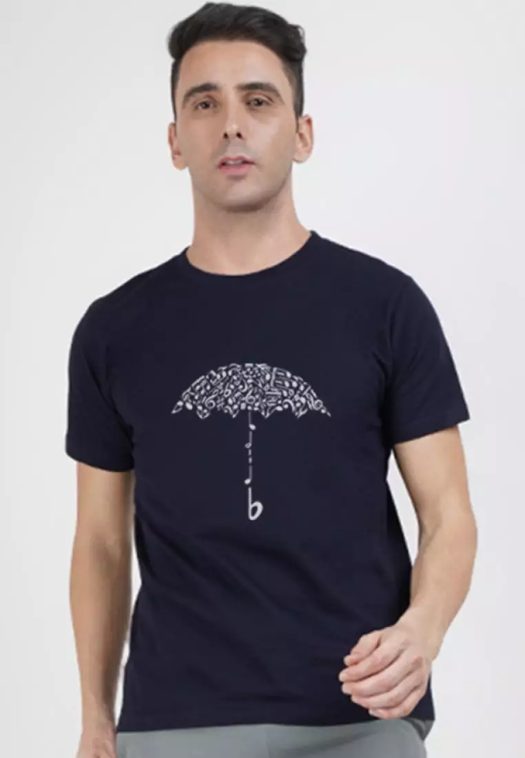 Rain Graphic Navy Blue Cotton Short Sleeve Regular Fit Tee