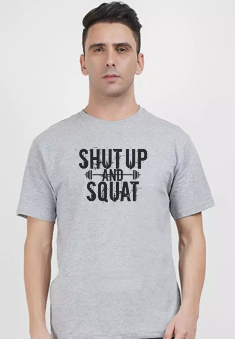 QuirkyTShut up and Squat Grey Cotton Short Sleeve Crew Neck Workout/Training Tee4006.001162.00