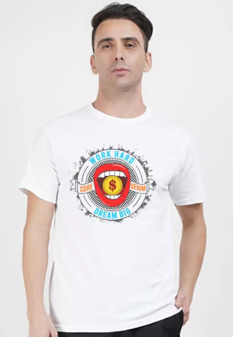 Work Hard Graphic White Cotton Short Sleeve Regular Fit Tee