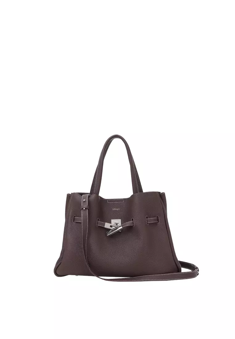 SAOIRSE Soft Structural Belt Tote Bag - Dark Brown