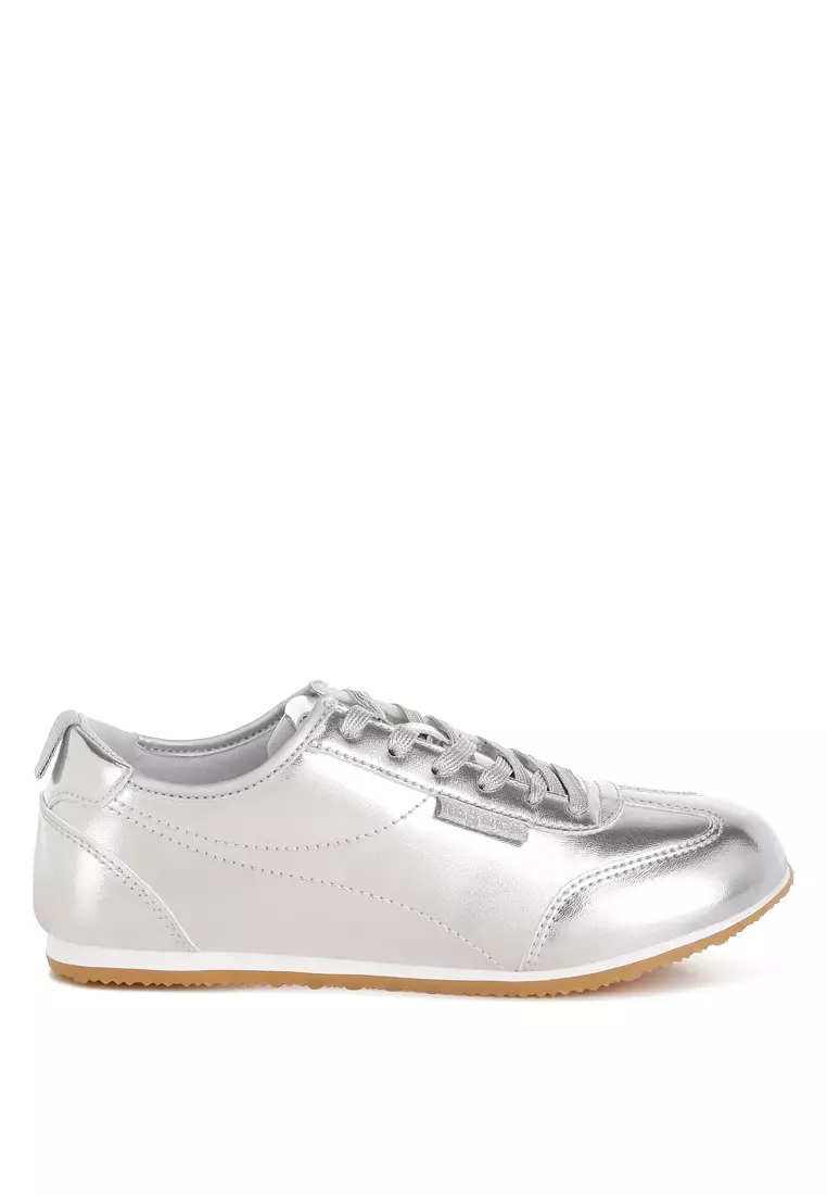 Metallic Faux Leather Sneakers in Silver