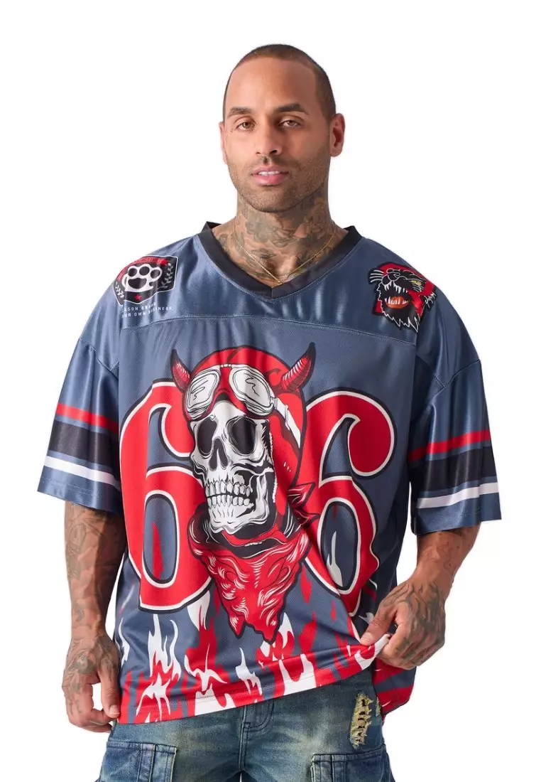 NYC Streetwear - 66 Skull American Football Jersey - Grey, Red