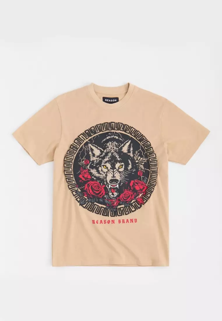 REASONNYC Streetwear - Rhinestones Wolf Short Sleeves Tee - Khaki2500.001999.00