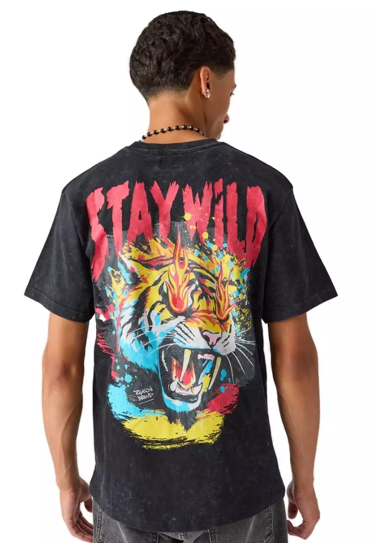 REASONNYC Streetwear - Stay Wild Tiger Short Sleeves Tee - Black2500.001999.00