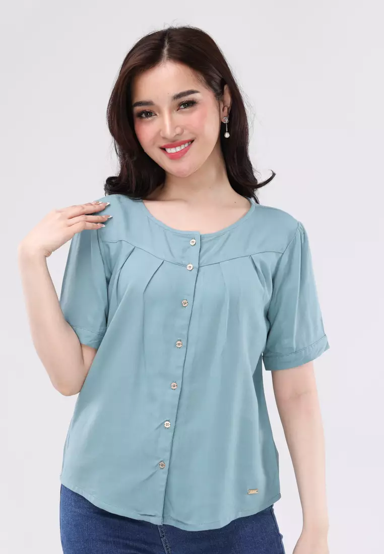 RedgirlBold Twill Short Sleeves Round Neck Blouse549.75341.00