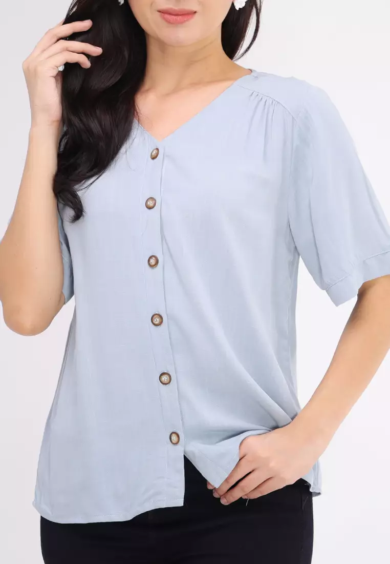 Woven Plain Soft Linen Short Sleeve Blouse