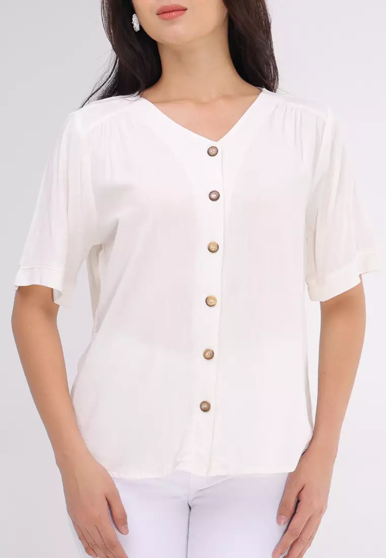 Woven Plain Soft Linen Short Sleeve Blouse