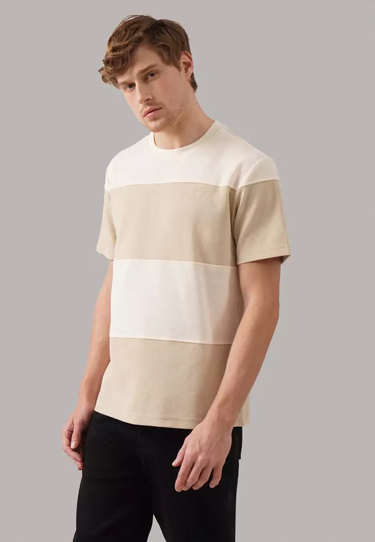 Regular Fit Color-Block Cut & Sew T-Shirt In Honeycomb Pique