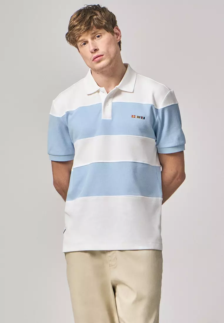 Regular Fit Color-Block Polo Shirt With Sailing Flag Icon Embroidery In Pique