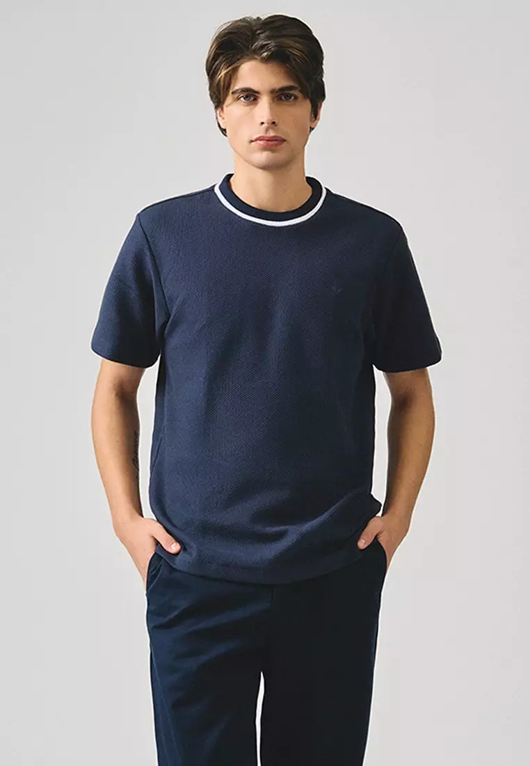 Regular Fit T-Shirt With Contrast Piping Detail In Textured Knit