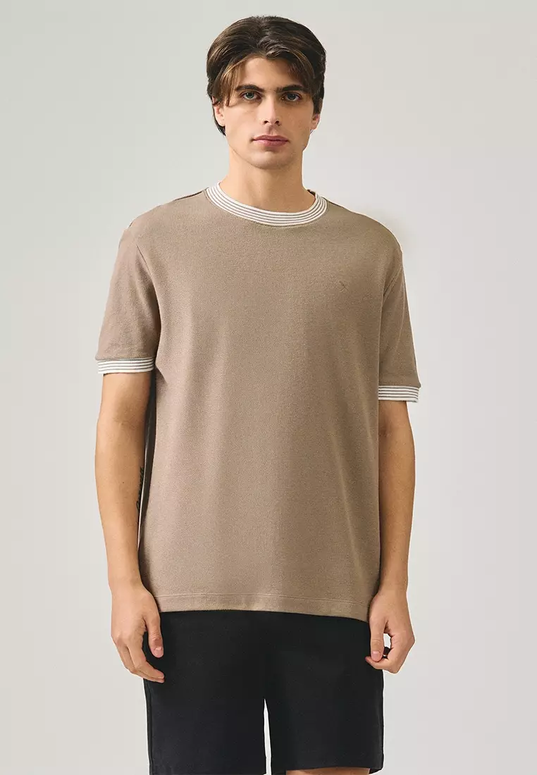Regular Fit T-Shirt With Multiple Contrast Tipping Detail In Textured Knit