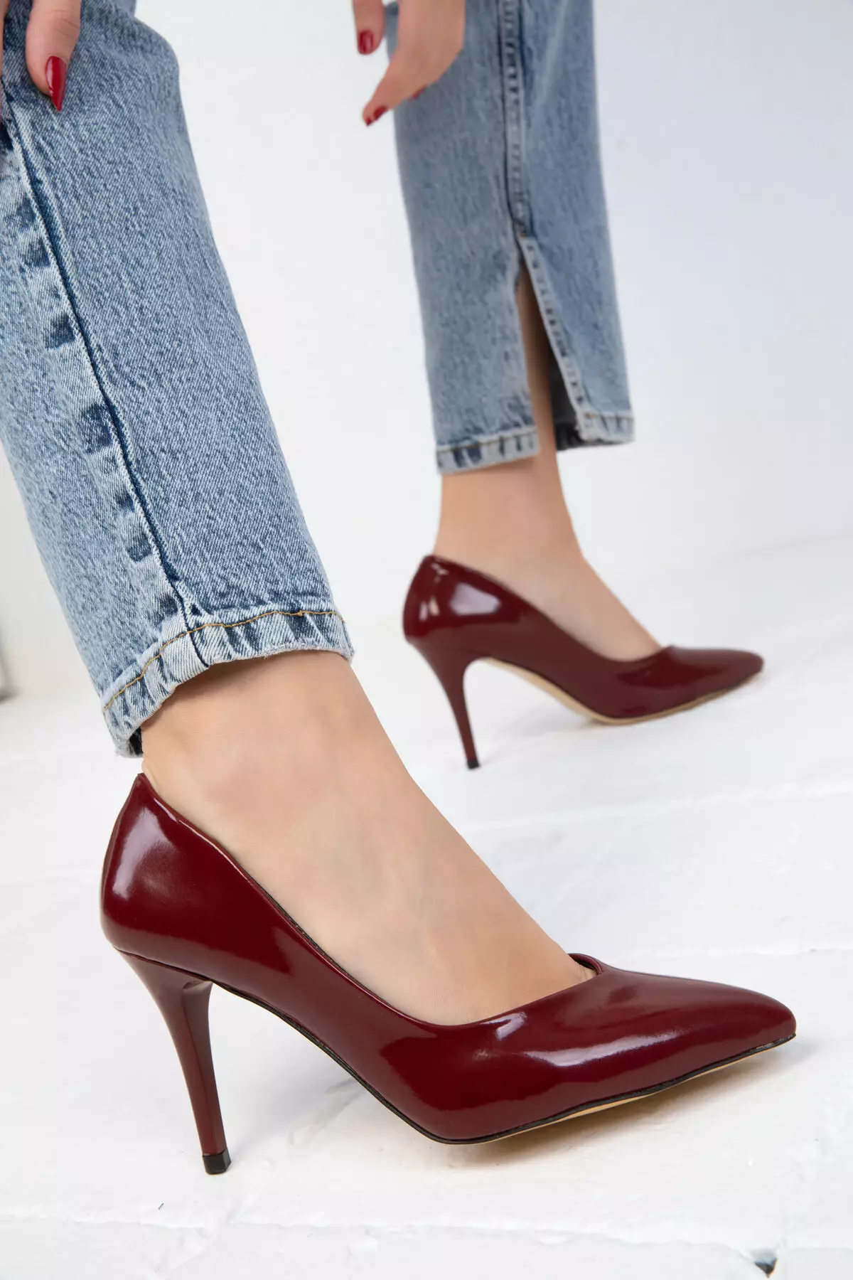 Claret Red Patent Leather 19549 Classic Women's Heeled Shoes