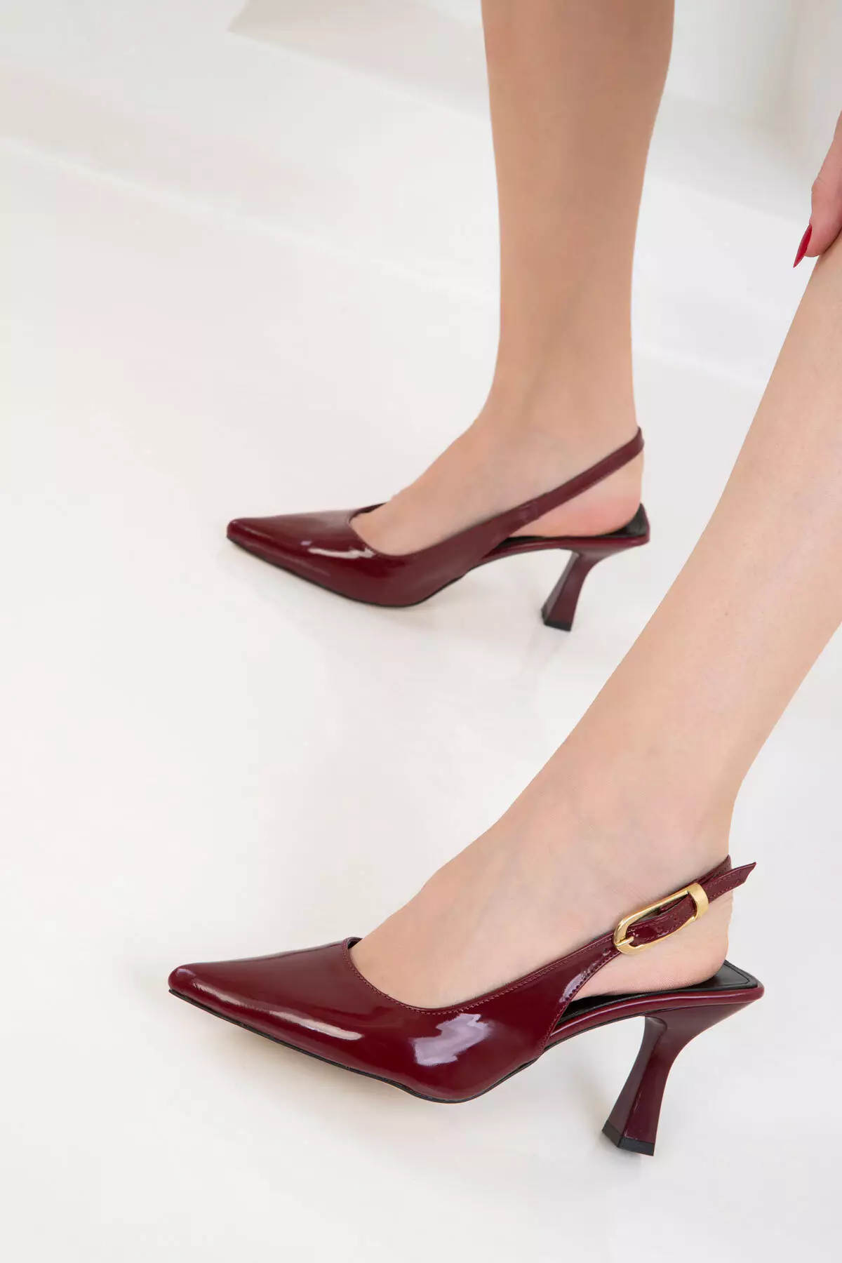 Claret Red Patent Leather Women's Classic Heeled Shoes 20596