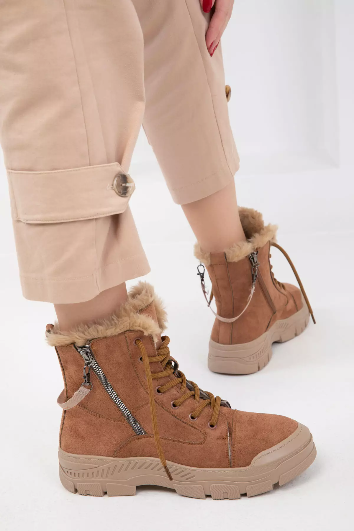 Tan Suede Women's Boots - 20007 Model Bootie