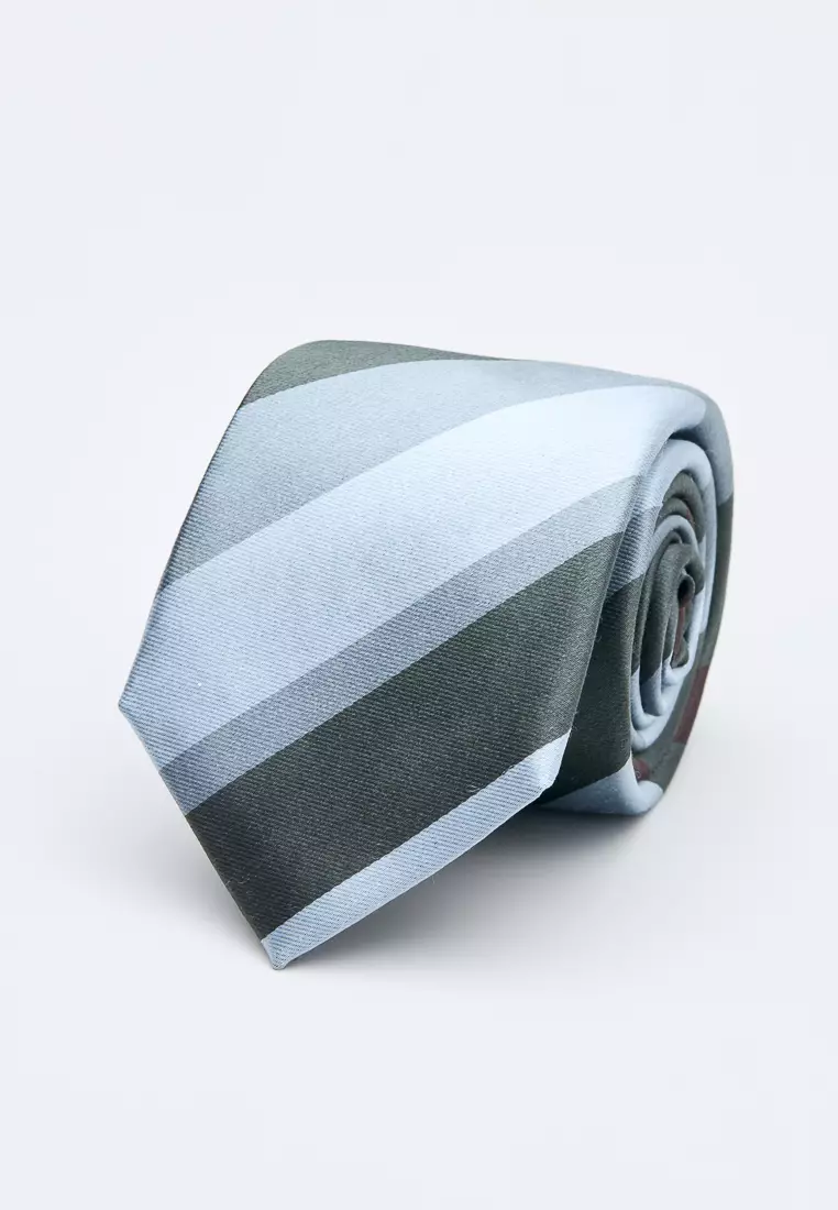 SST&CSilver, Brown and Grey Diagonal Stripes Silk Tie3909.00