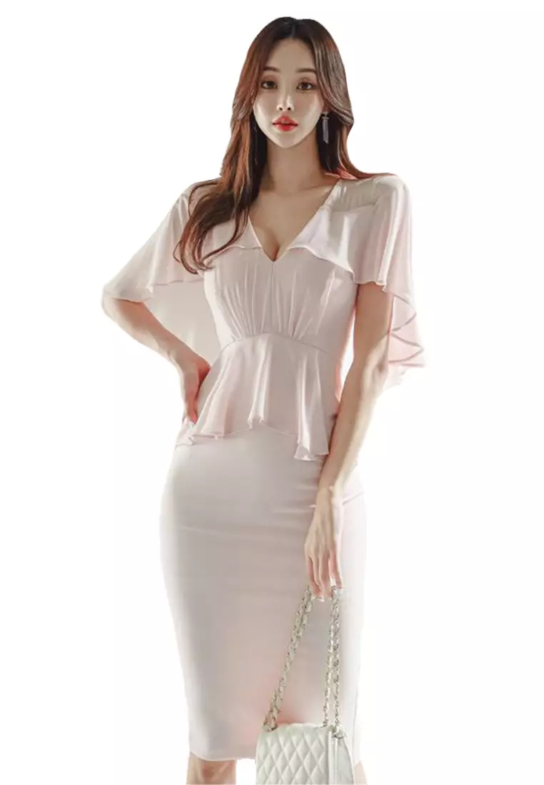 2025 New V-Neck Off-Shoulder Ruffled Hem Sexy Dress CA061349