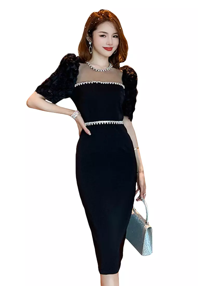 2025 S/S New summer celebrity round neck nail beaded white long dress CA061511BK