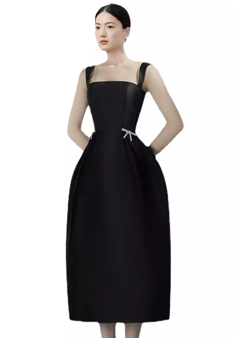 2025 Summer New Drop Strap Solid Color Skirt with Bra Dress CA4021918BK