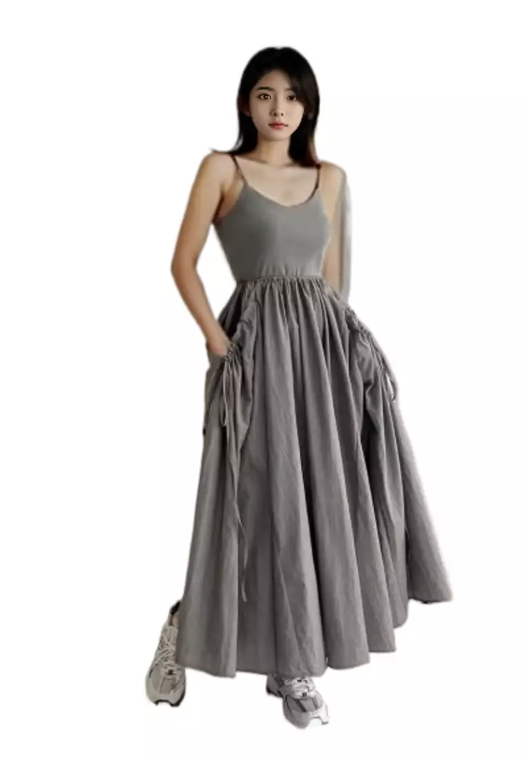 SunnydaysweetyFrench casual U-neck suspender dress K061301GY3360.00