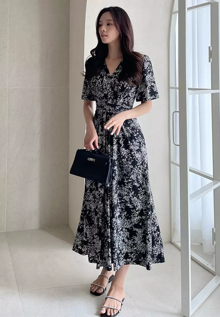 SunnydaysweetyFrench style ink printed lace up dress CA25032714BK3270.00
