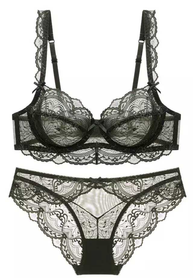 Lace Ultra-Thin See-Through Underwire Bra with Panty Set CA123109GR