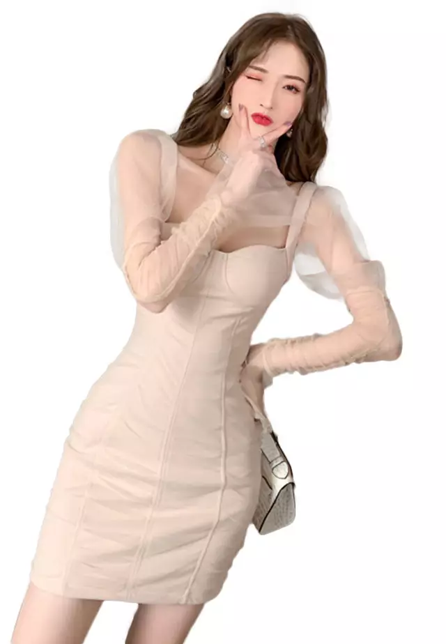Mesh Sexy Tube Top Wrap Hip One Piece Dress A21022229