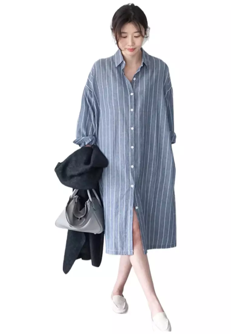 SunnydaysweetyNew casual striped slim fit oversized shirt CA25091917GY2610.00