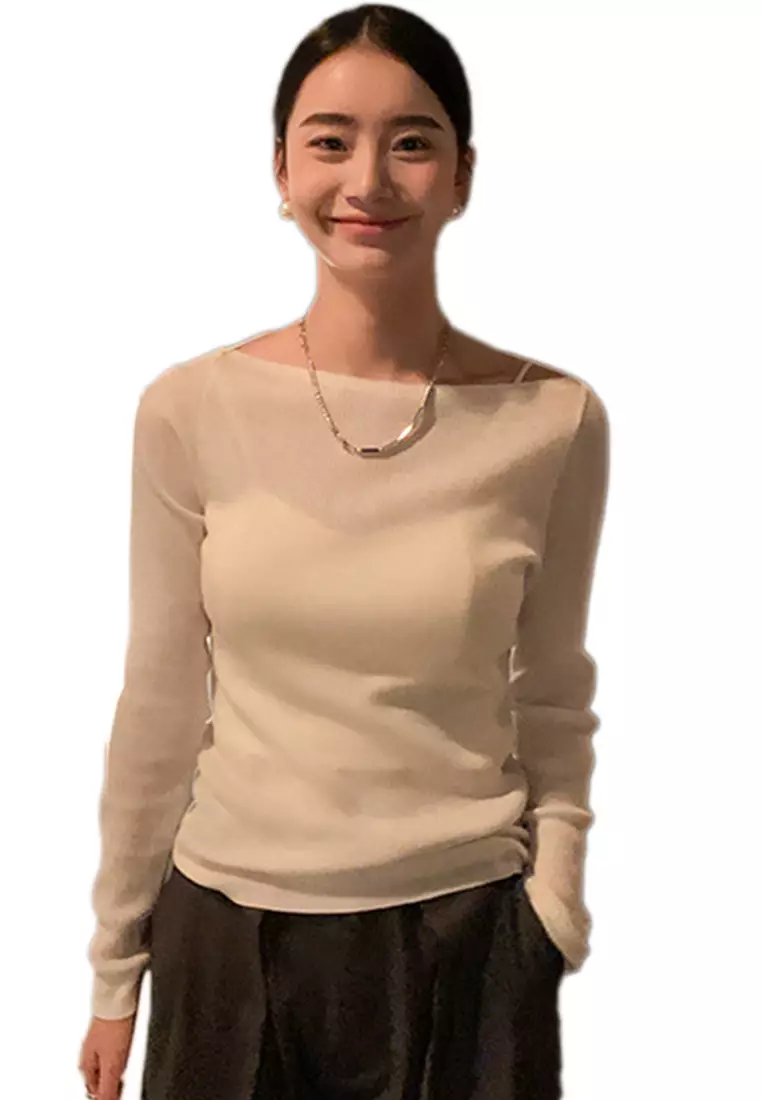 New Sheep Wool Knit Slim Fit Long Sleeve Ladies Top A22090710W