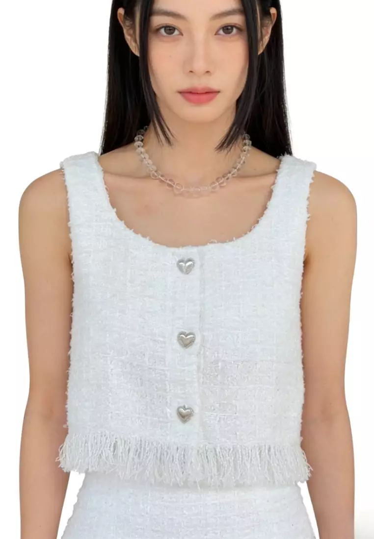 SunnydaysweetySquare Neck Heart Button Fringe Crop Camis CA26031928W2750.00