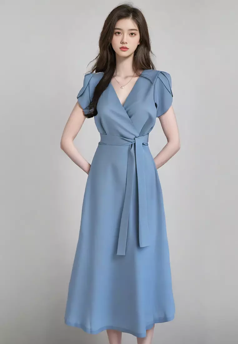 SunnydaysweetySummer elegant lace up waist cinching dress CA25032716BL2910.00