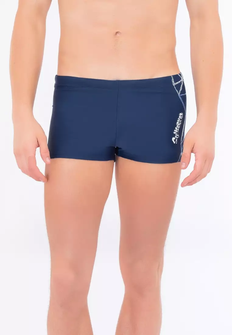 Men Navy Line Pattern Swim Shorts